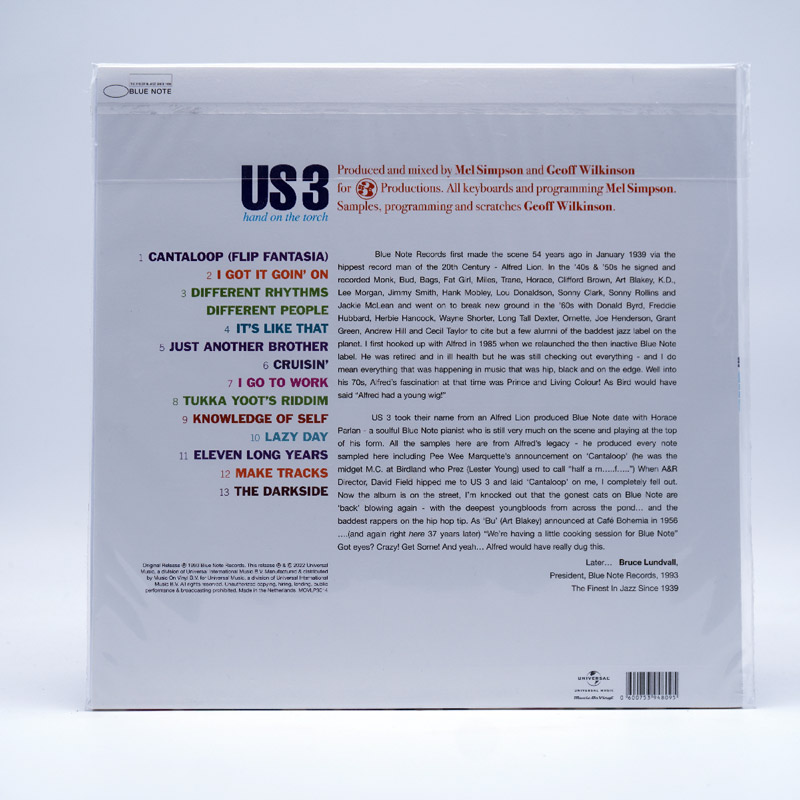 “Hand on the Torch” is the debut studio album by the British jazz rap group Us3. Released to widespread acclaim, it garnered attention for blending jazz and hip-hop, sampling material from iconic 20th-century jazz recordings, notably Herbie Hancock’s “Cantaloupe Island” on the track “Cantaloop (Flip Fantasia)”, which also had two music videos released as singles.