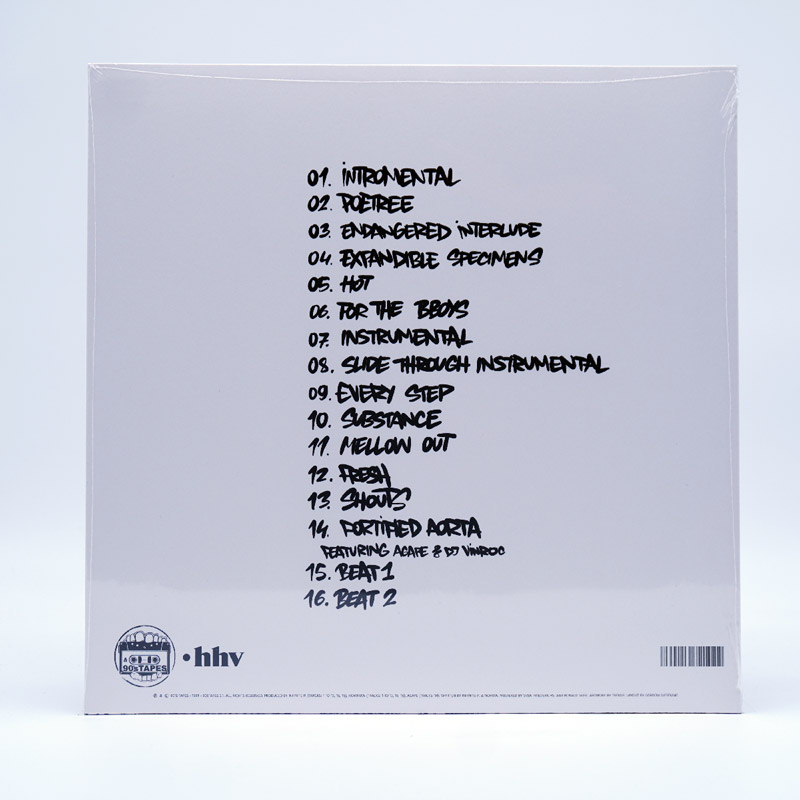 Endangered Species’ “Intangible” was an underground classic released in 1999 on cassette in a very limited run, when word got out this music somehow spread from Calgary throughout Canada to Chicago, Australia, Europe & beyond. The producer / MC combo of Nohow & Infinite P produced the record on the ASR-10 in their dusty home studio using records & a Roland digital 8 track. The only guest appearances were from Agape (Isosceles) & DJ Vinroc (5th Platoon / Triple Threat DJ’s) a song they recorded on tour.