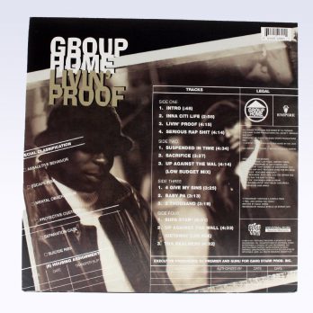 |Livin’ Proof is the debut studio album by American hip-hop duo Group Home, released on November 21, 1995, via FFRR/Payday Records. Recorded at the iconic D&D Studios in New York, the album’s production was masterfully handled by Gang Starr and Big Jaz, resulting in one of the most influential records of the golden era of hip-hop.
