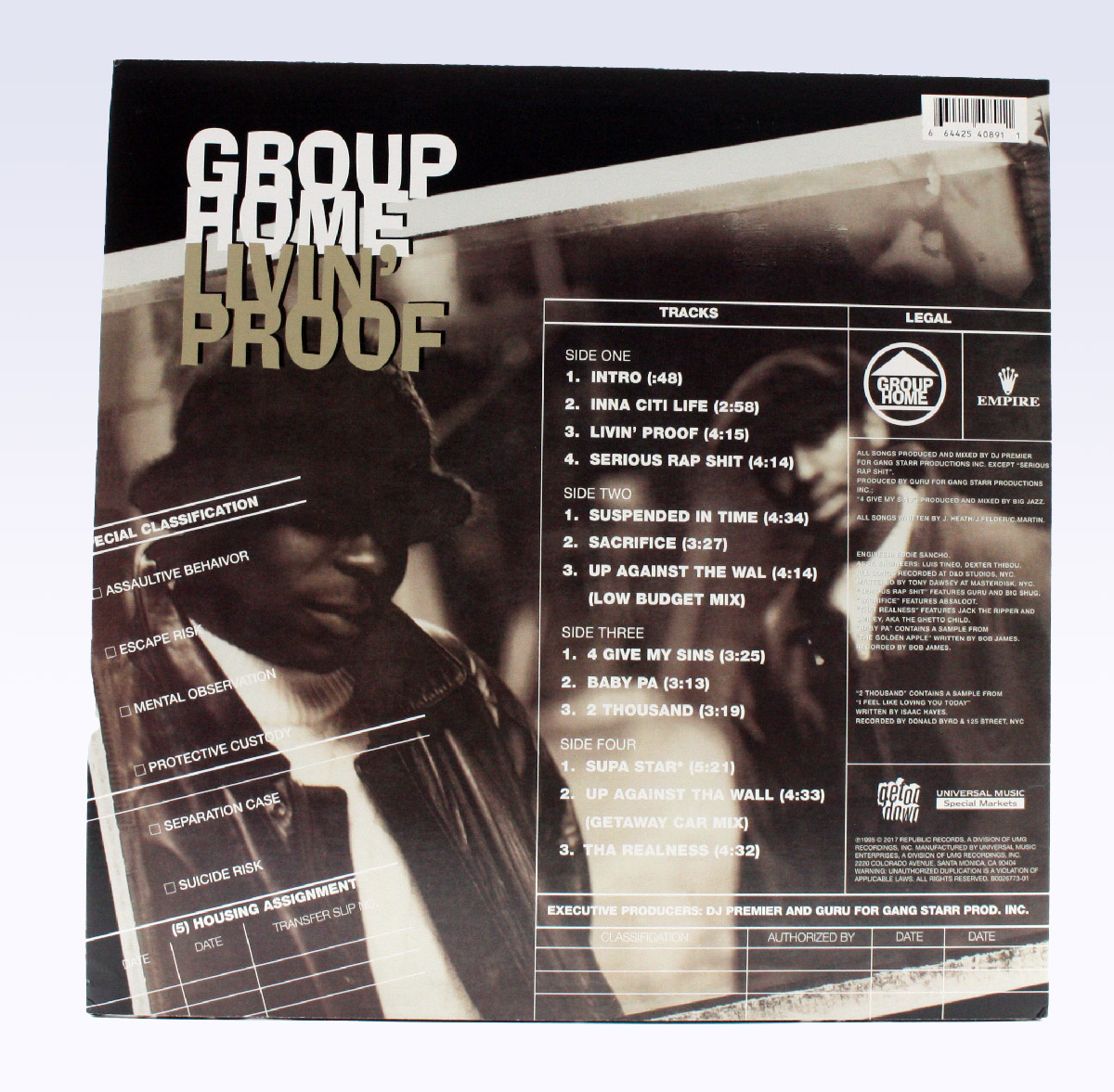 The album features guest appearances from Absaloot, Big Shug, Guru, Brainsick Enterprize, and Smiley the Ghetto Child, enhancing its raw, authentic sound. Livin’ Proof is widely celebrated for its deep, reflective lyrics and timeless production, making it a must-have for fans of 90s East Coast hip-hop.