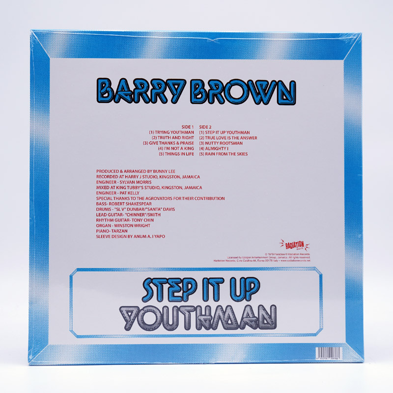 “Step It Up Youthman” is a studio album by Jamaican reggae artist Barry Brown, originally released in 1979. Known for his smooth vocal style and conscious lyrics. The album showcases Brown’s talent for blending roots reggae rhythms with social commentary, addressing themes such as political corruption, social injustice, and the struggles of everyday life. “Step It Up Youthman” is celebrated for its powerful messages and Brown’s soulful vocals, contributing to its status as a classic within the reggae music genre.