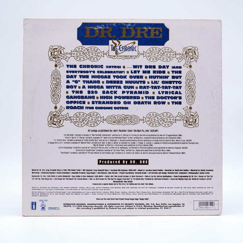 **The Chronic** is the debut studio album by American hip hop producer and rapper Dr. Dre. Released on December 15, 1992, by Death Row Records and Interscope Records, the album marked Dr. Dre’s first solo venture after leaving N.W.A. It features a signature G-funk sound characterized by melodic synthesizers, slow grooves, and heavy beats.
